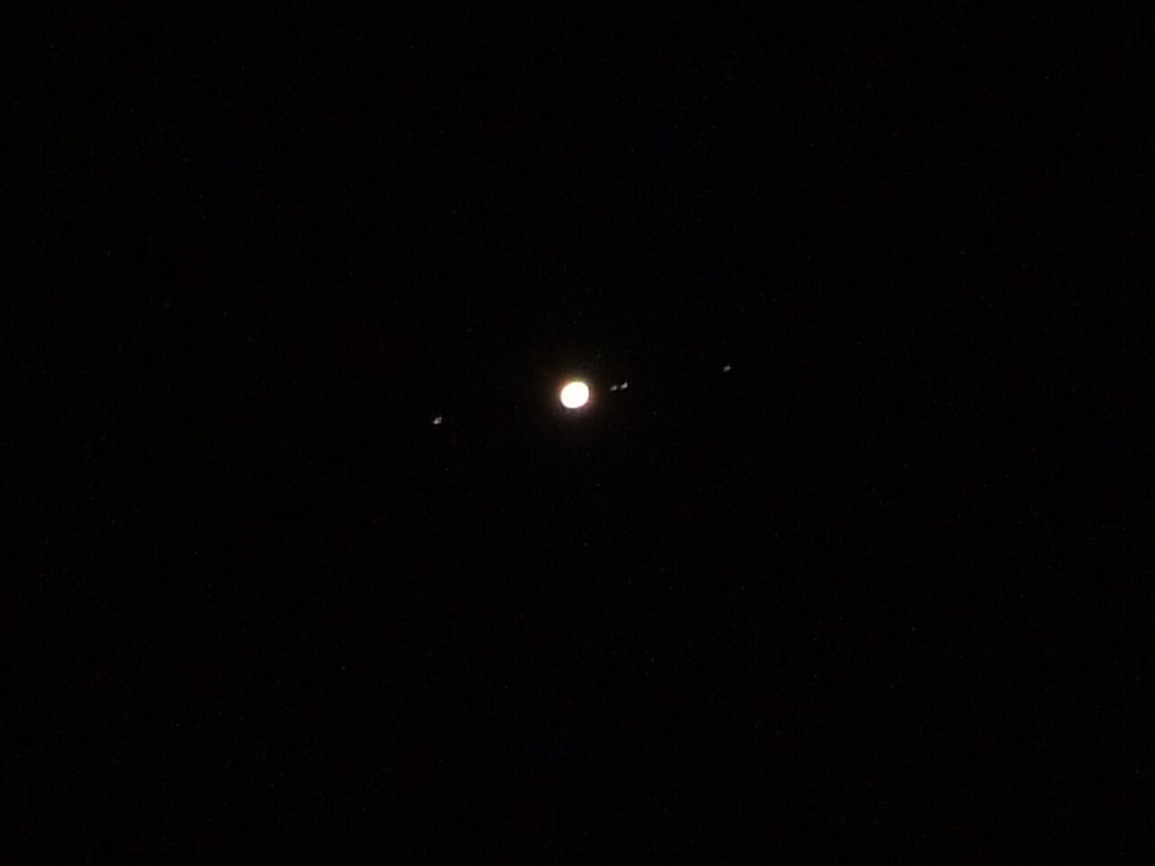 C’est mon premier vertige : je viens de prendre en photo 4 satellites (des lunes) de Jupiter. 😮