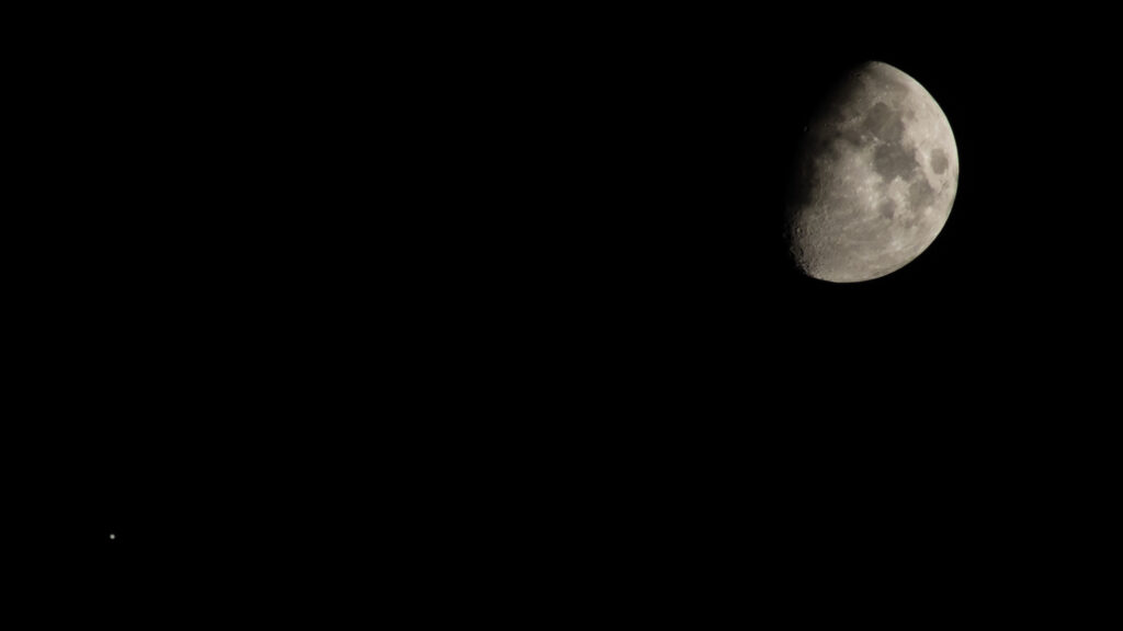 La Lune est relativement facile à photographier avec un appareil photo classique, et ça devient encore plus intéressant quand la Lune n’est pas seule dans le cadre.