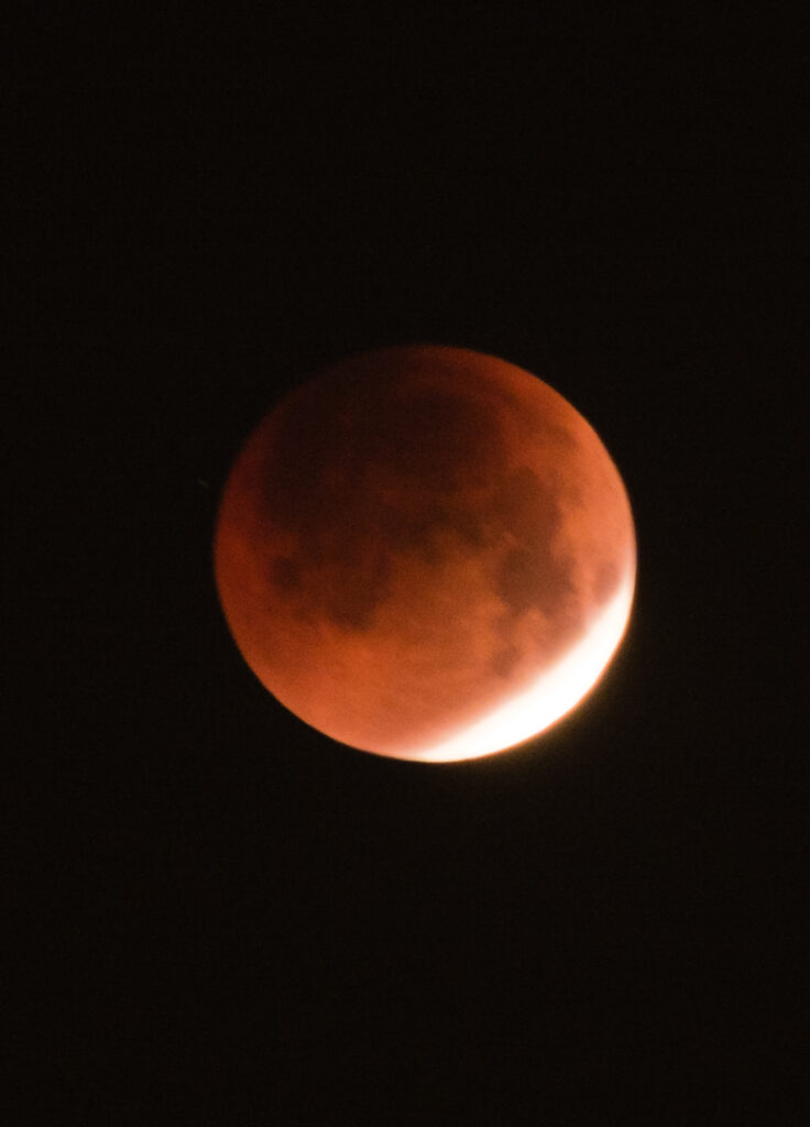 Le début de l’éclipse est prévu vers 3h30 (entrée de la Lune dans la pénombre de la Terre), suivi de l’entrée dans l’ombre à 4h30, puis l’éclipse totale débute à 5h30 avec un maximum à 6h11. La Lune se couchant à 6h00, il ne sera pas possible, ici, d’observer la sortie de la Lune de l’ombre de la Terre. Mais le moment de l’éclipse totale est à portée de courage !