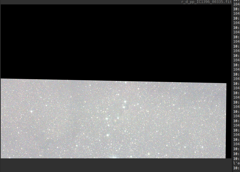 La veille, j’ai seulement saisi l’objet IC1396 en cible dans NINA, sans vérifier le cadrage, alors que l’avant-veille j’avais regardé le cadrage et je l’avais modifié à la main pour améliorer le cadre en centrant la nébuleuse de la Trompe d’éléphant.