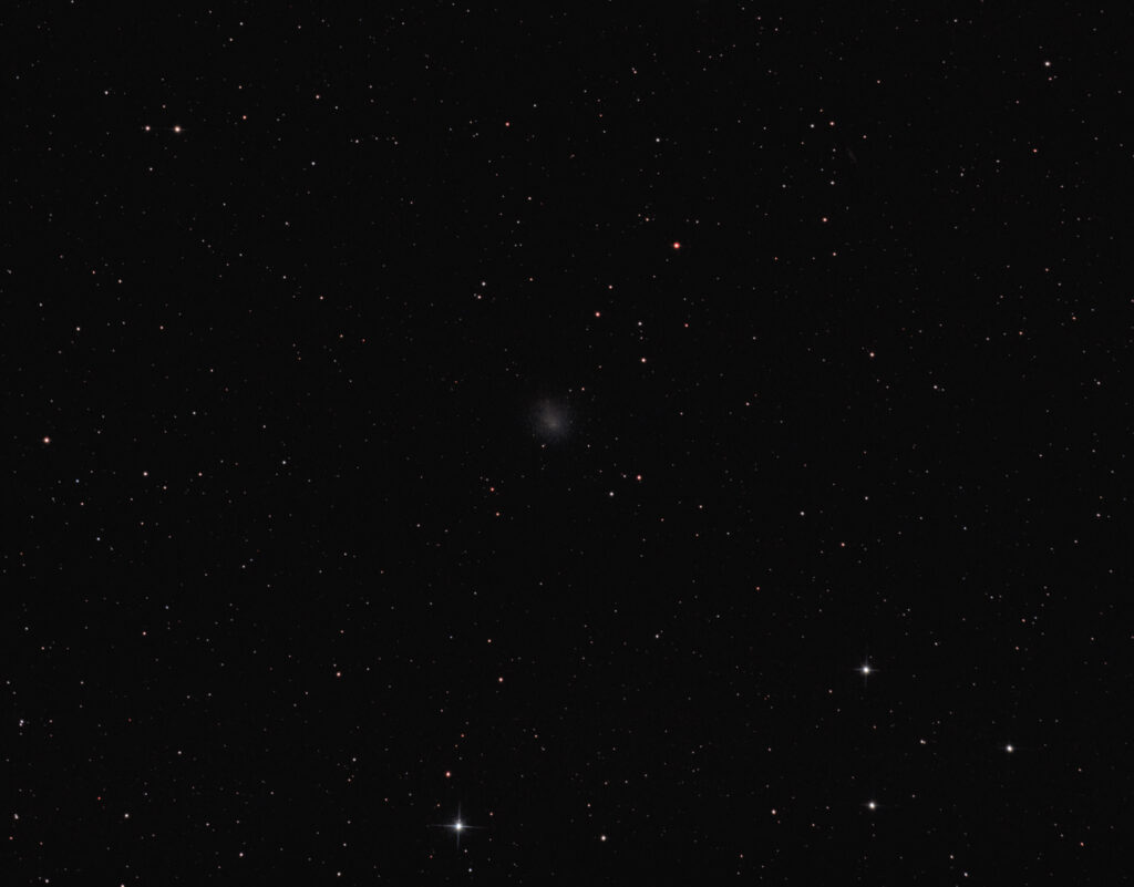 Avant le crépuscule astronomique j’en ai profité pour prendre quelques photos de la comète 12P/Pons-Brooks, qui commence à être observable. Elle devrait être LA comète de 2024, avec son passage au plus près du soleil (son périhélie) prévu le 24/04/2024. Pour le moment ce n’est qu’une petite tâche diffuse.