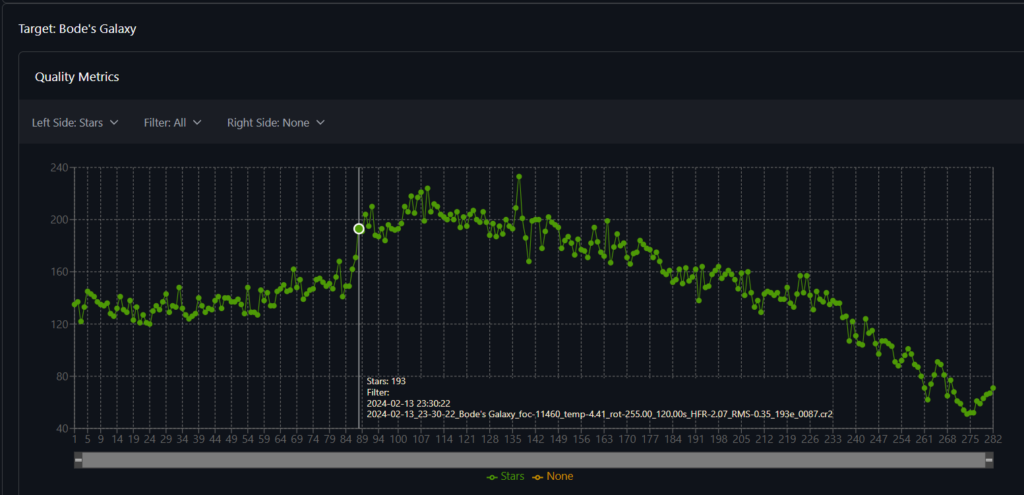 NINA offre une vue intéressante permettant de suivre le nombre d’étoiles visibles sur chaque photo prise, au fil du temps.