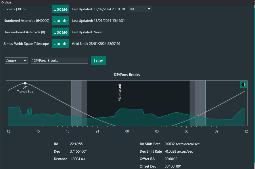 Sur NINA j’utilise le plugin “Orbitals” pour avoir les éphémérides, entre autres, des comètes.