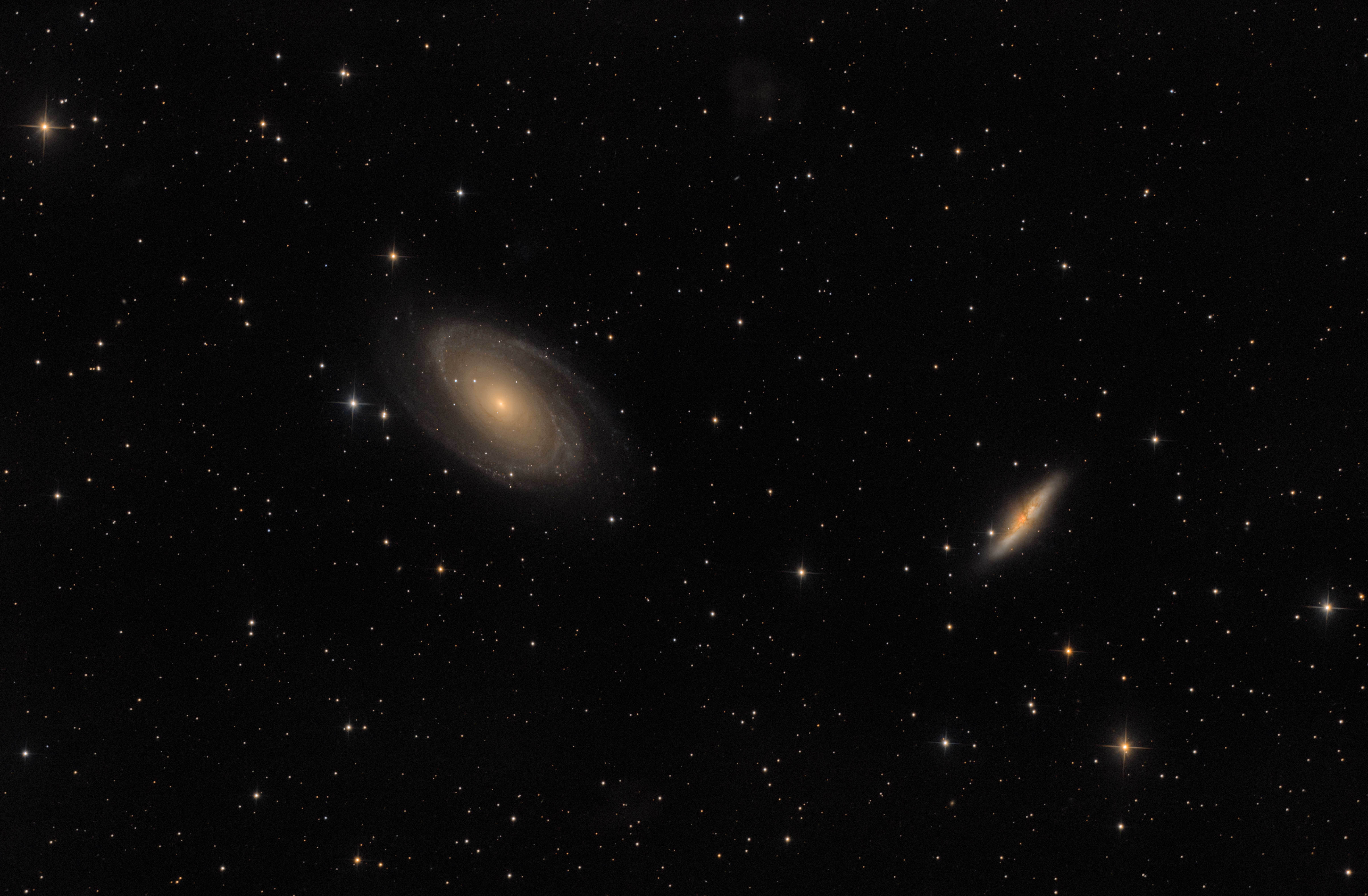 La nuit s’annonce parfaite : aucun nuage, bonne température, bon seeing. tant pis pour la comète, qui n’était de toutes façons visible que très peu de temps en début de soirée, je choisi pour le nuit une cible que j’avais déjà faite il y a un an : le duo de galaxies M81 et M82.