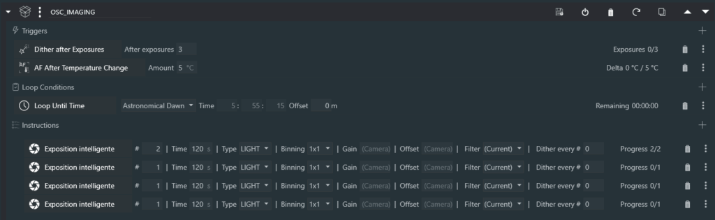 Je configure une séquence dans N.I.N.A qui alterne les prises de vues avec les filtres L,R,V et B.