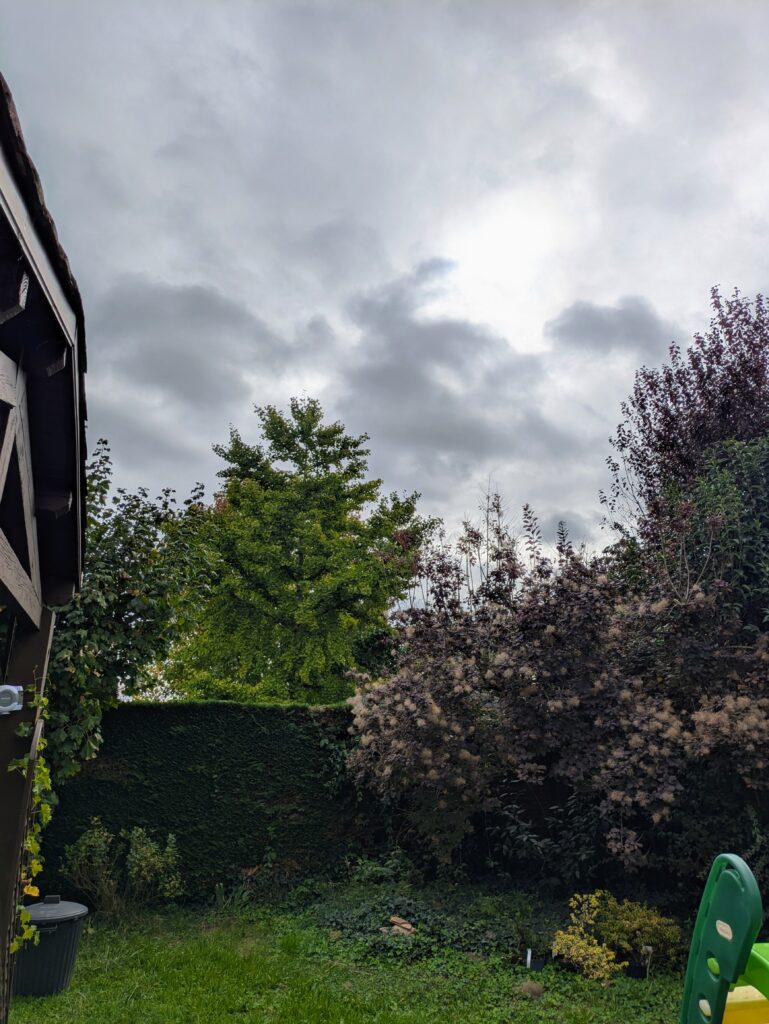 Finalement je ne peux même pas régler l’appareil photo sur le soleil : il n’y aura aucune petite éclaircie qui me permettrait de le faire.