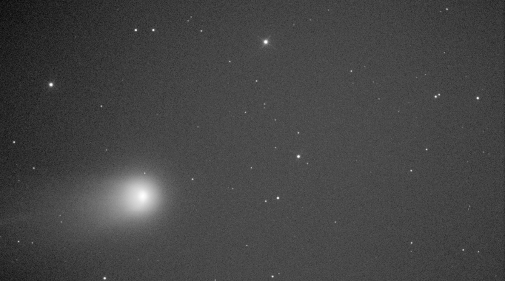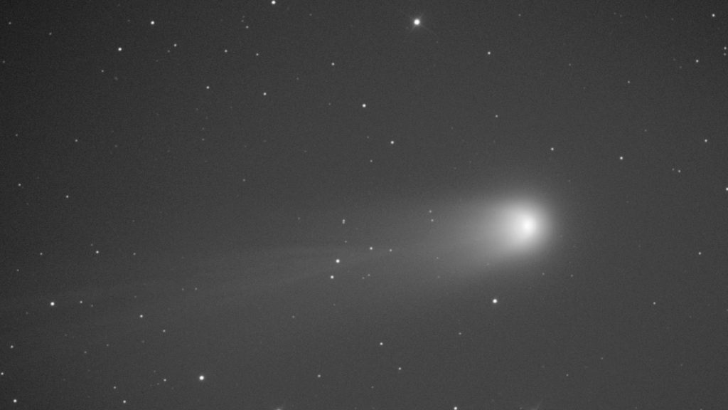 Je constate cependant que, avec un temps de pose de 120 secondes, le noyau de la comète est allongé. Je décide donc de passer à des temps de pose de 40 secondes lors de mes prochaines tentatives.