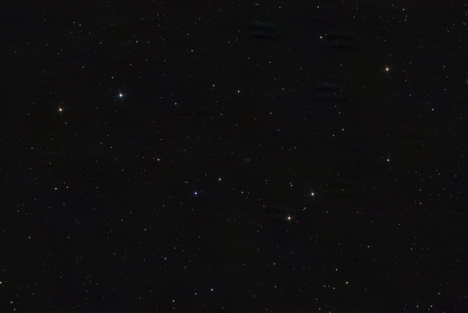 Avec si peu de photos, le bruit est très présent. Le suivi du télescope a été fait sur la comète, les étoiles sont donc floues. Mes images flats sont mauvaises, ça fait des pâtés dans le fond de ciel. Le résultat est donc, encore une fois, mauvais ! 😐